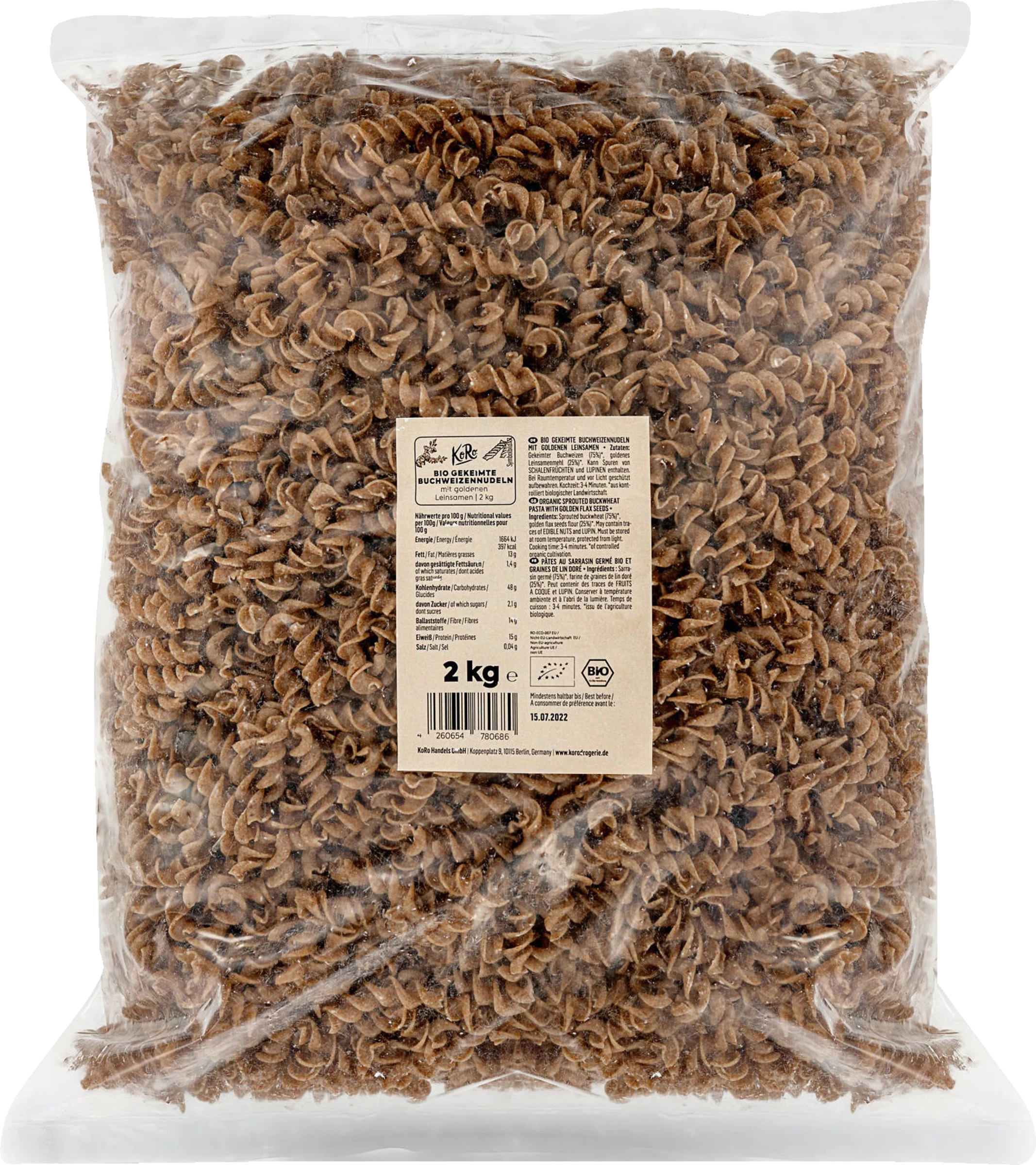 Pastagenuss in Spiralform – Made by KoRo! Die gekeimten Nudeln überzeugen durch ihre Bioqualität, die leicht nussige Buchweizennote und ihre ganz besondere Herstellung. Beim Keimprozess werden die Saaten noch vor dem Vermahlen in Wasser eingeweicht, damit sie Wasser aufnehmen und weich werden. Danach folgt eine schonende Trocknung und die Weiterverarbeitung zu herrlich leckeren Fusilli, die dann bissfest, vegan und glutenfrei auf dem Teller landen können. Mit einer Zubereitungszeit von nur 7-8 Minuten und der 2 kg-Vorteilspackung qualifizieren sich die Nudeln unter anderem für ein schnelles Essen bei spontanem Besuch. Zusätzlicher Pluspunkt: Durch die Spiralform nimmt die Pasta jede Soße perfekt auf!
